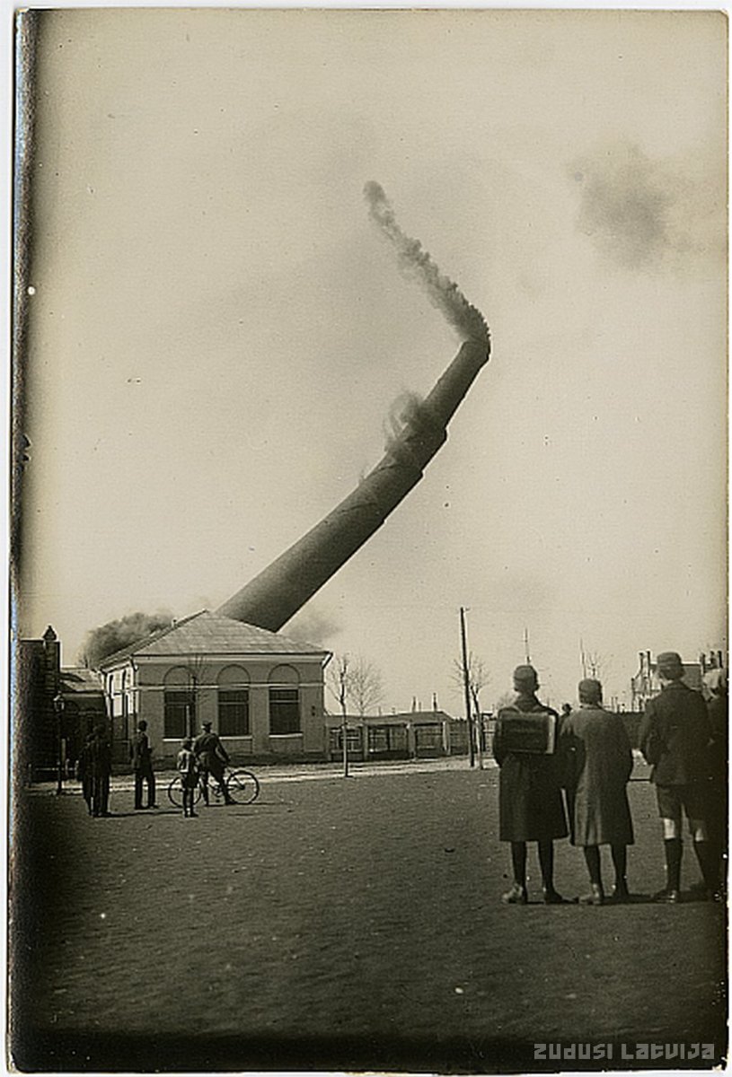 Rīga. Muitas krastmala. Sabrūk skurstenis