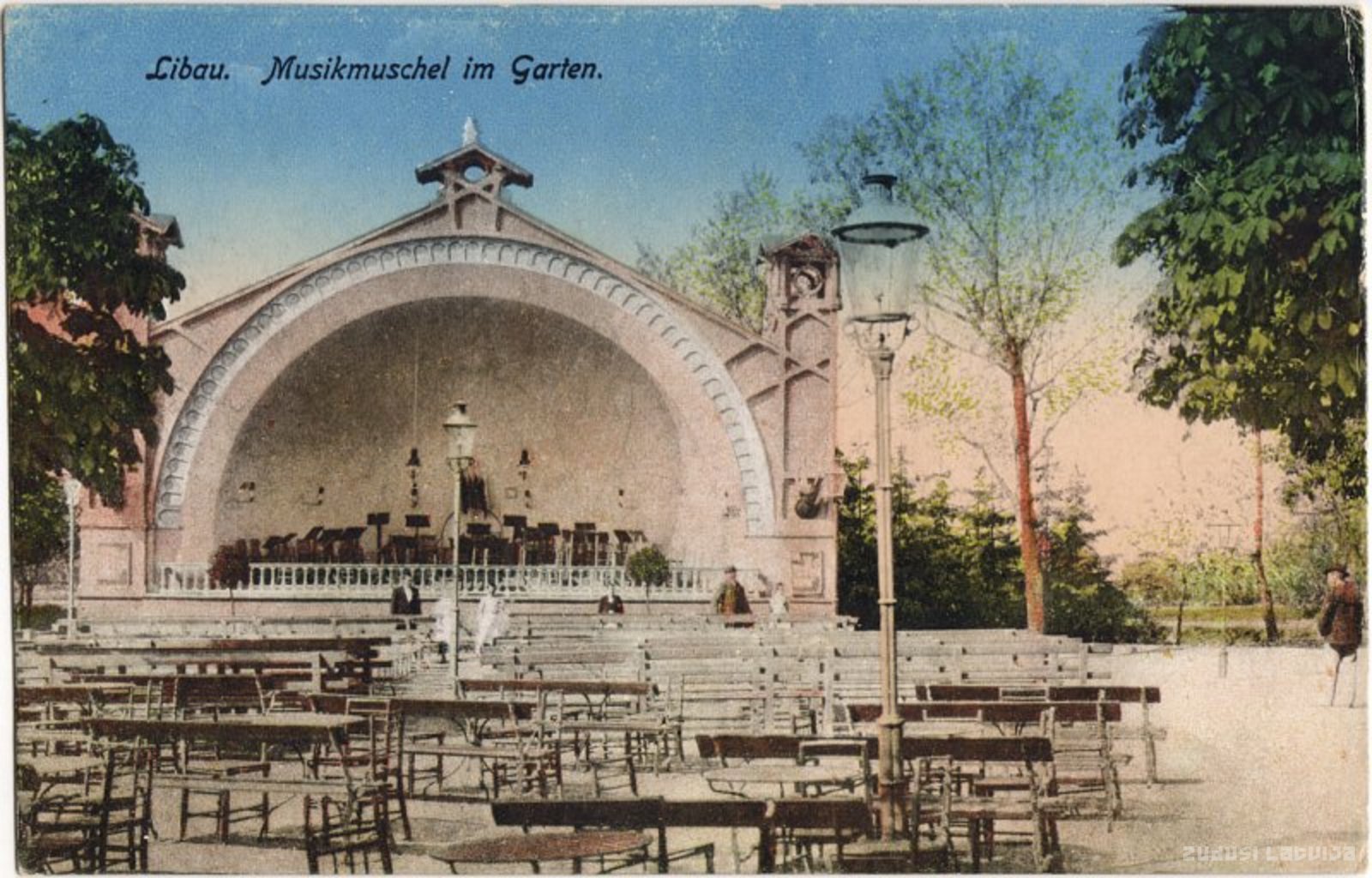 Liepāja, vecā Liepājas Kūrmājas estrāde. Tā ietilpa Liepājas Kūrmājas kompleksā, kurš tika uzcelts 1875. gadā. Līdz ar estrādes uzcelšanu Liepājas sabiedriskā dzīve pārcēlās no Pilsētas parka jeb Alkšņu birzs uz Jūrmalas parku. Tā kā 1928. gadā vecā estrāde bija kļuvusi par mazu esošajām vajadzībām, vecās estrādes vietā uzcēla jaunu estrādi