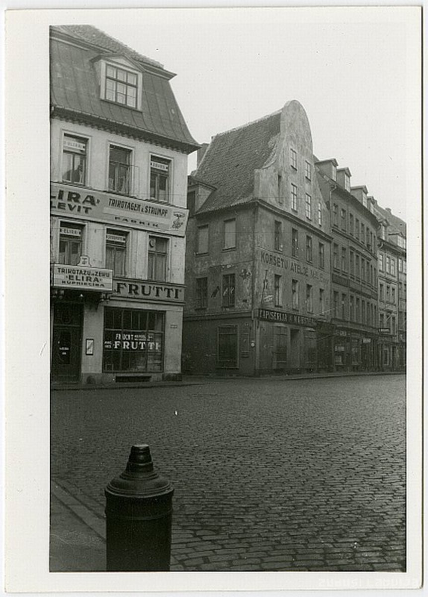 Tirgoņu ielas gals pie Krāmu ielas, attēla kreisajā pusē nams Lielajā Jaunavu ielā 1. Tirgoņu iela minēta kopš 14. gadsimta 30. gadiem (platea mercatorum, vēlāk de kopstrate, Kaufstrasse). Jau viduslaikos tā bijusi nozīmīga tirdzniecības iela. Tās nozīme īpaši pieauga pēc pilsētas tirgus pārcelšanas uz jauno Tirgus laukumu - vēlāko Rātslaukumu, kad Tirgoņu iela, kā Lielās Smilšu ielas turpinājums (Tirgoņu iela tolaik iekļāva arī Šķūņu ielas posmu līdz Zirgu ielai), savienoja tirgu ar galveno ieeju pilsētā