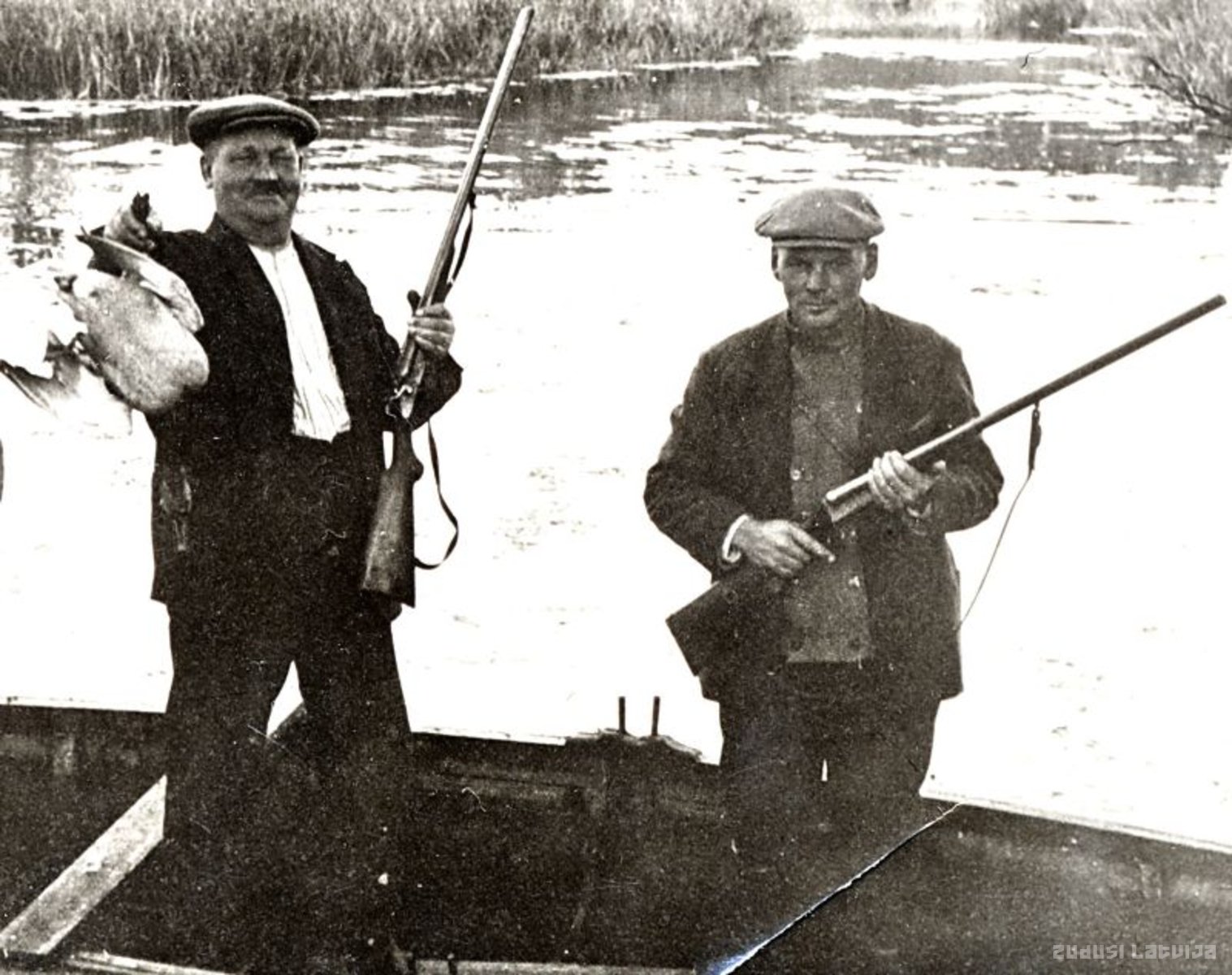 No kreisās - Kārlis Epiņš Biržu dzirnavu-kokzāģētavas īpašnieks un Kāris Bite veikala īpašnieks Biržos. Medības dzirnavu ezerā
