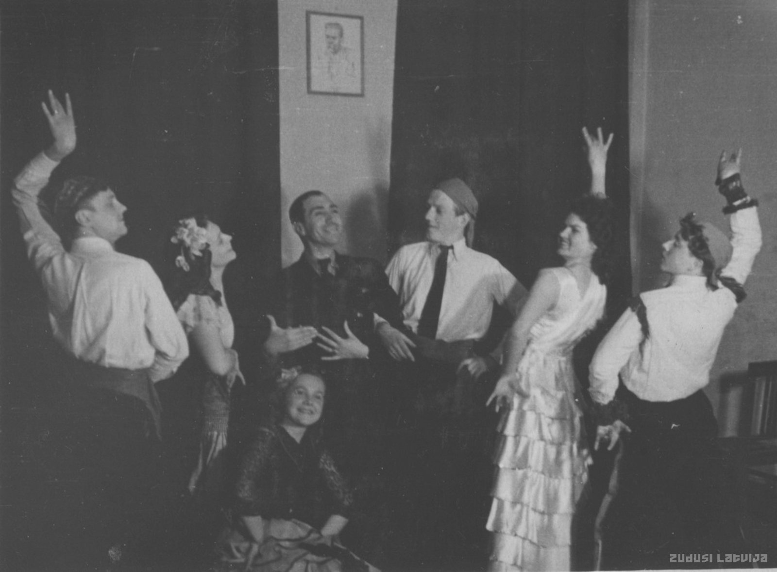 Teātra un choreografijas vidusskolas 2. kursa audzēkņi. 3. augšējā rinda no kreisās: 2. Antons Stankēvičs?, 2 rinda: 2.Zigrīda Stungure, 3. Vera Šneidere, 4. Dzidra Brūvele- Čapase, 5. Helēna Romānova? 1. rinda: 1. Regīna Šīmane – Rake, 4. Tija Baboliņa – Ātrā, 5. Kārlis Kiršteins „Šarls”