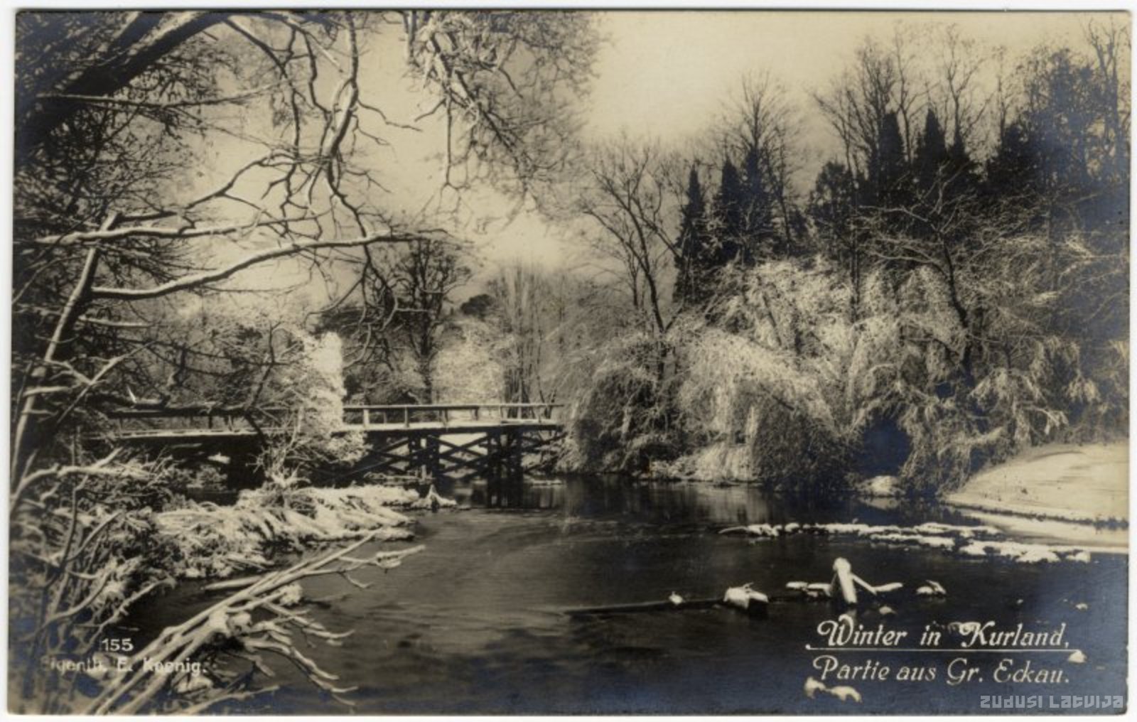 Iecava. Koka tilts pār Iecavas upi ziemā