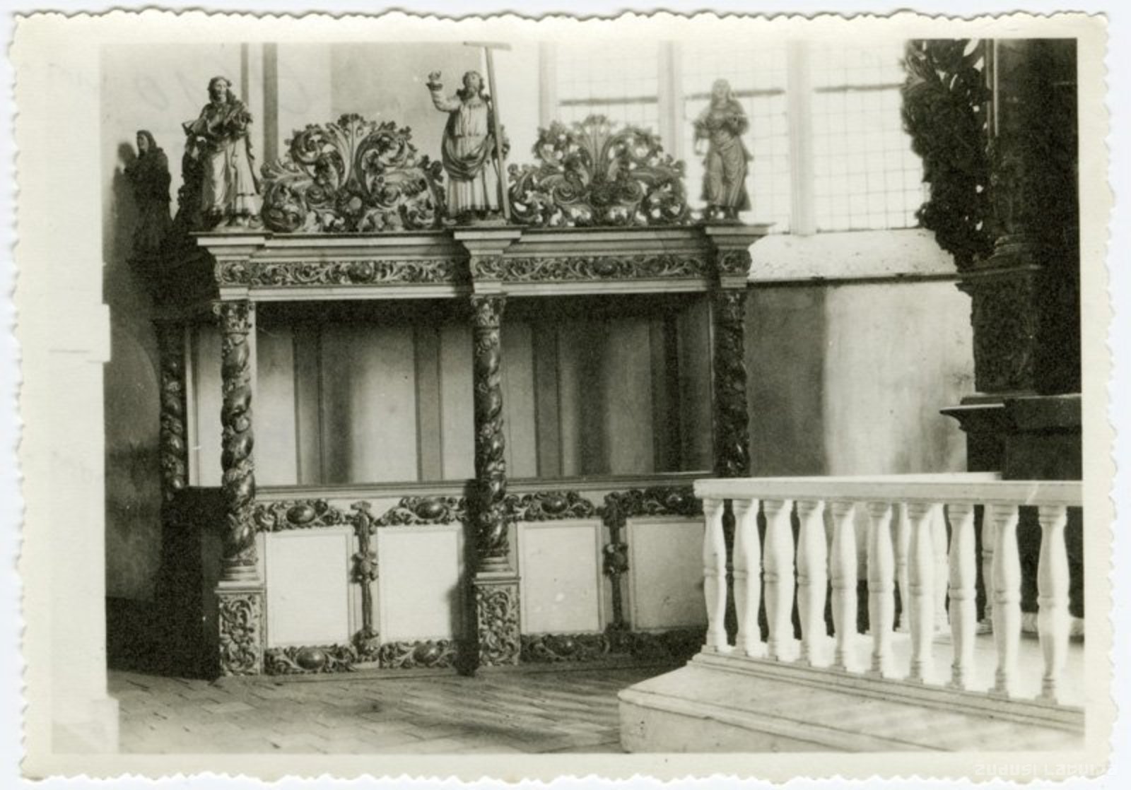 akanta vītnēm veidotiem medaljoniem. Ar barokāliem ornamentāliem un skulpturāliem kokgriezumiem visbagātāk greznota biktskameras dzega, kuru rotā kupli akanta vijumi, frīze un apaļskulptūras