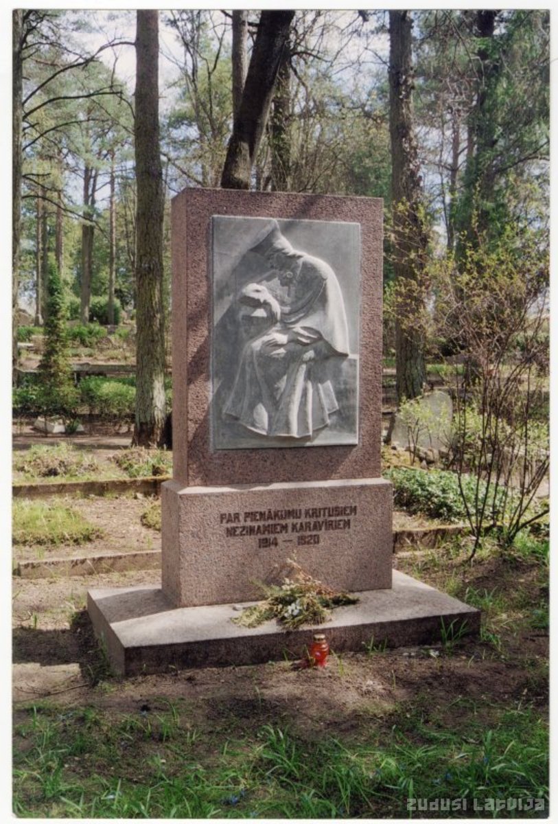Dobeles kapsēta. Piemineklis par pienākumu kritušiem nezināmiem karavīriem 1914 - 1920