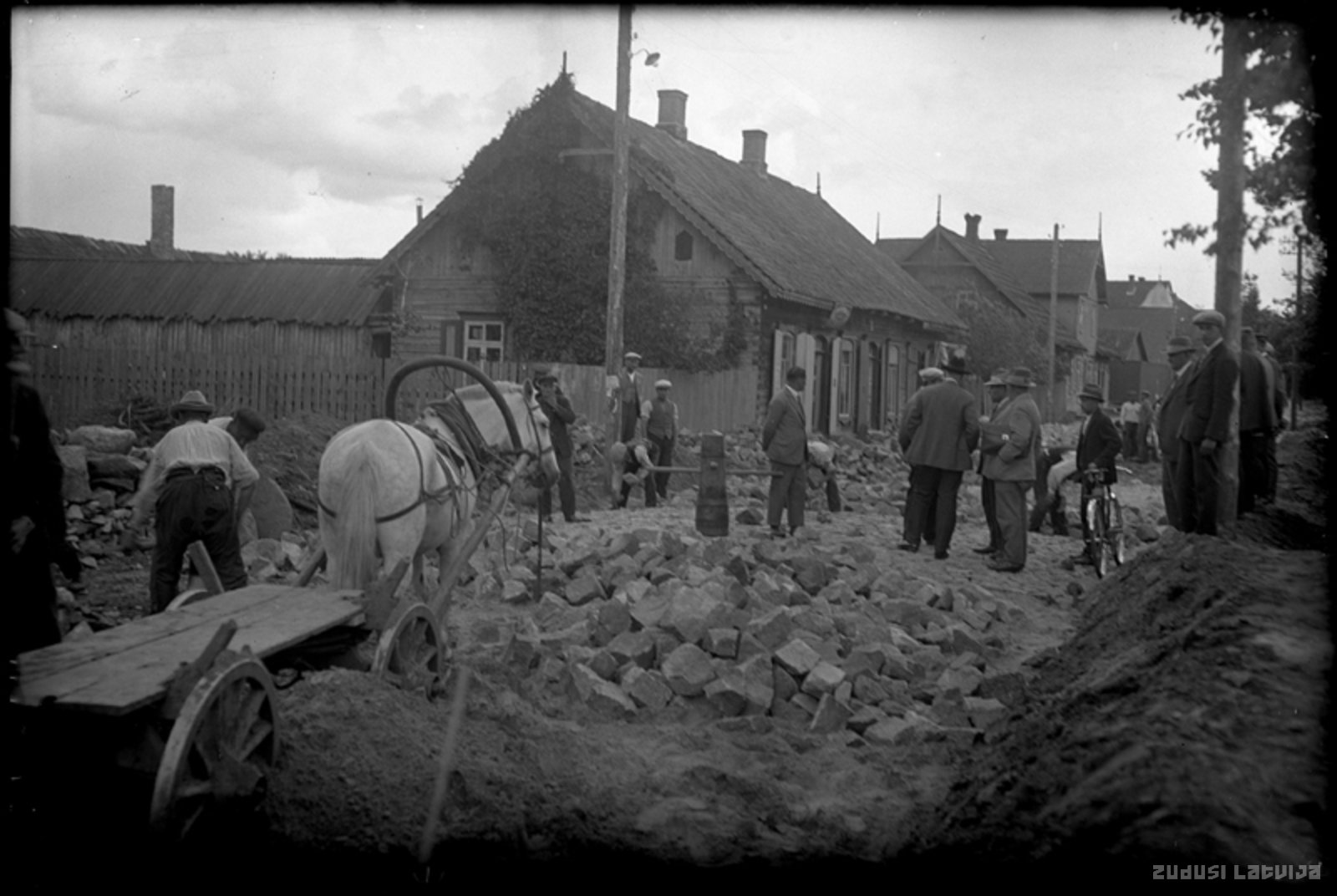 Strenči. Pulkveža Zemitāna ielas bruģēšana