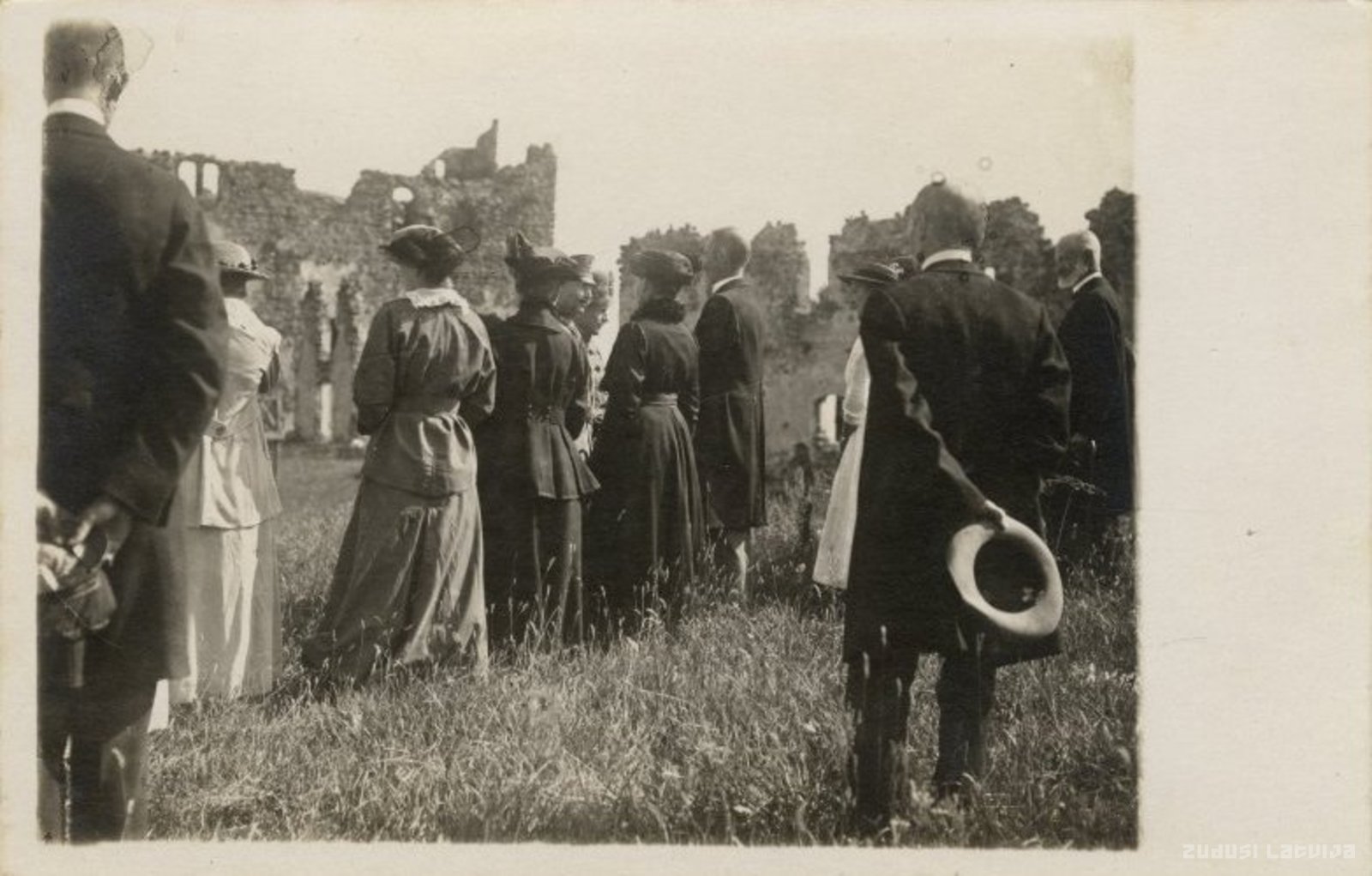 Dobele. Cilvēku grupa pilsdrupās