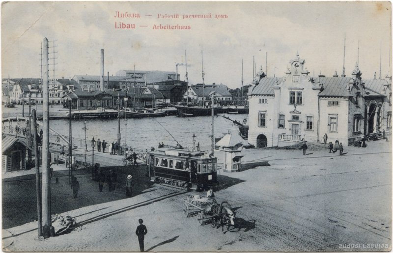 Liepāja. Osta, tramvaja tilts un Strādnieku nams