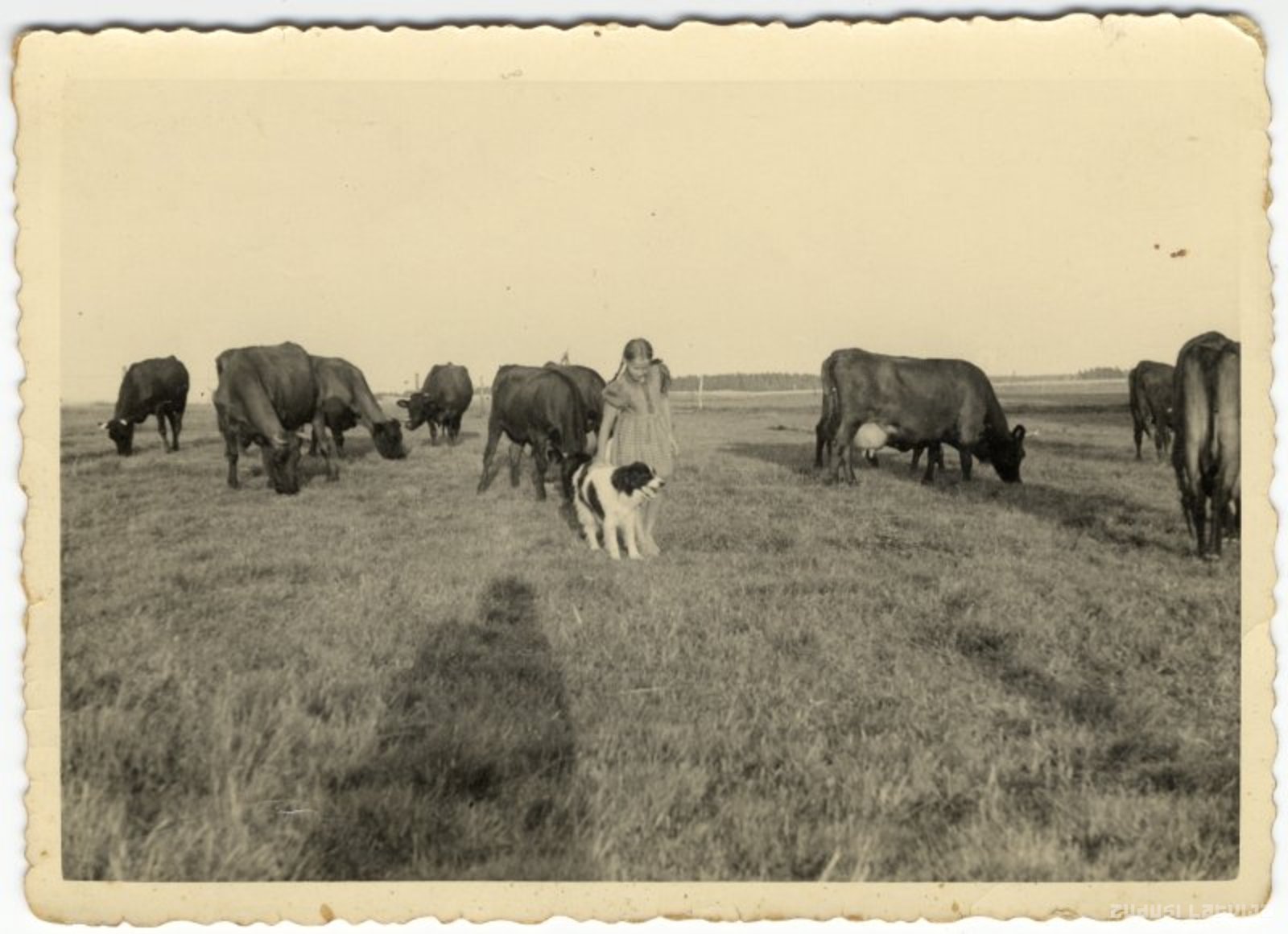 Vaidava. Meitene un suns pie Telmēnu māju ganāmpulka