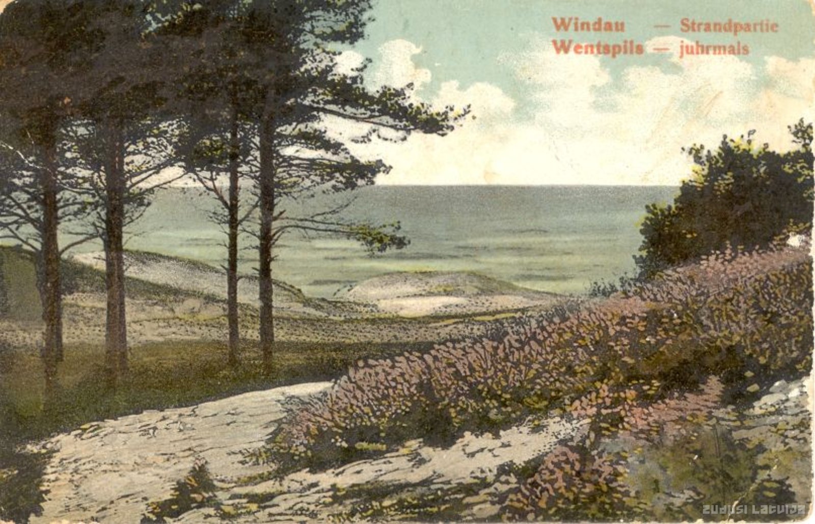 Ventspils jūrmala 20.gadsimta sākumā. Jūrā izvirzīto molu dēļ garāmplūstošās smiltis sagūla jūrmalas ielokā, radot brīnišķīgu pludmali. Ventas straume atkritumus aizrauj tālāk jūrā, tāpēc pludmale ir ļoti tīra
