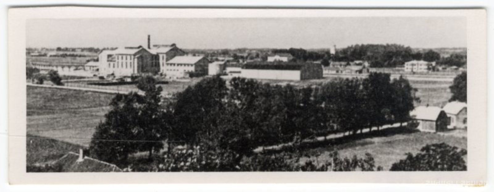 Priekšplānā redzama Krustpils mācītājmuižas teritorija un aleja (nav saglabājušies), kas uz to veda. Fotografēts no Krustpils luterāņu baznīcas jumta