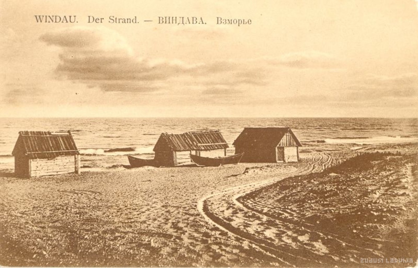 Ventspils jūrmala 20.gadsimta sākumā. Zvejnieku tīklu būdas