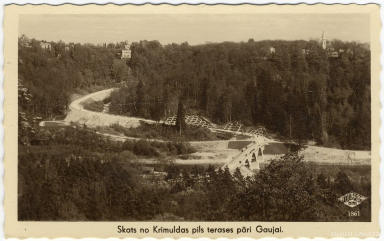 Krimuldas pagasts. Skats no Krimuldas pils terases pāri Gaujai