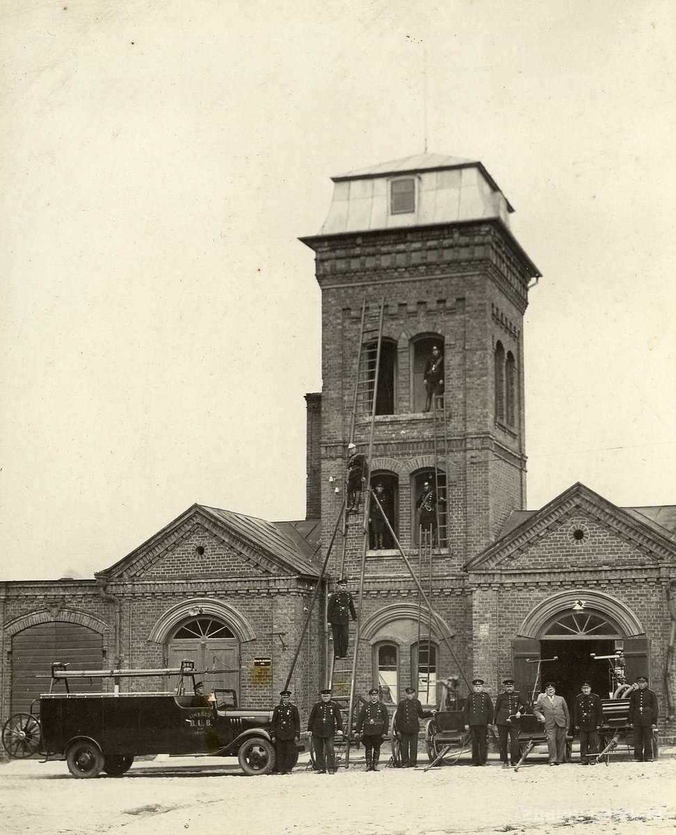 Limbažu brīvprātīgo ugunsdzēsēju biedrības ēka pēc torņa pārbūves 1939. gadā. Ēka ir celta 19. gadsimta trešajā ceturksnī - historicisma periodā un pārstāv t.s. ķieģeļu stilā arhitektūru. Pirmsākumos ēkas tornim bija taisns jumts, uz kura atradās skatu laukums. Laika gaitā jumta konstrukcija sāka bojāties, tāpēc 1936. gadā tika uzrakstīts lūgums rekonstrukcijas darbu sākšanai. Darbi neveicās tik ātri, kā bija iecerēts un tikai 1939. gada 10. februārī pilsētas galva Dr. R. Eglītis saņēma apliecību par telpu nodošanu lietošanai