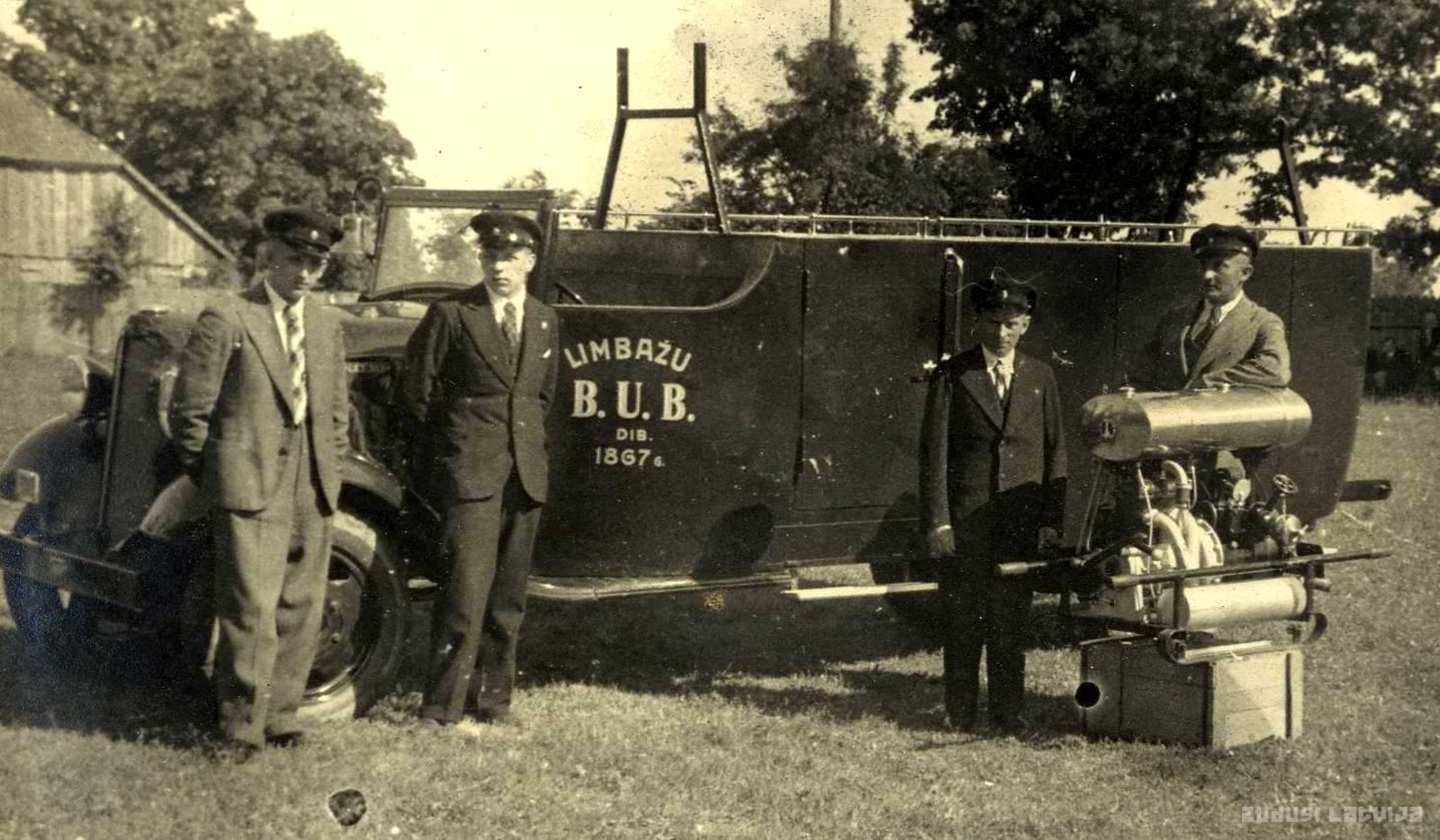 Limbažu brīvprātīgo ugunsdzēsēju biedrības jaunās tehnikas - amerikāņu automāšīnas "Chevrolet six" un motorsūkņa "Magirus" iesvētīšana pilsētas parkā 1935. gada 1. septembrī