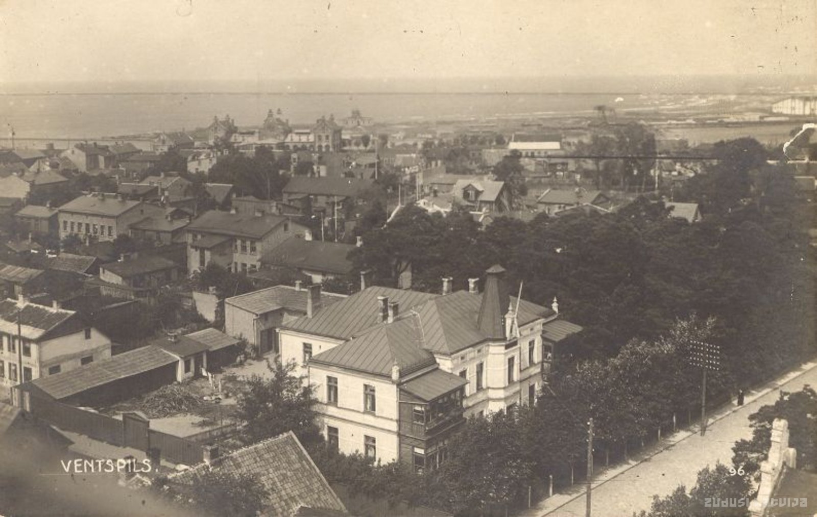 Panorāmas skats uz Ventspils vecpilsētas apbūvi un ostas celtnēm