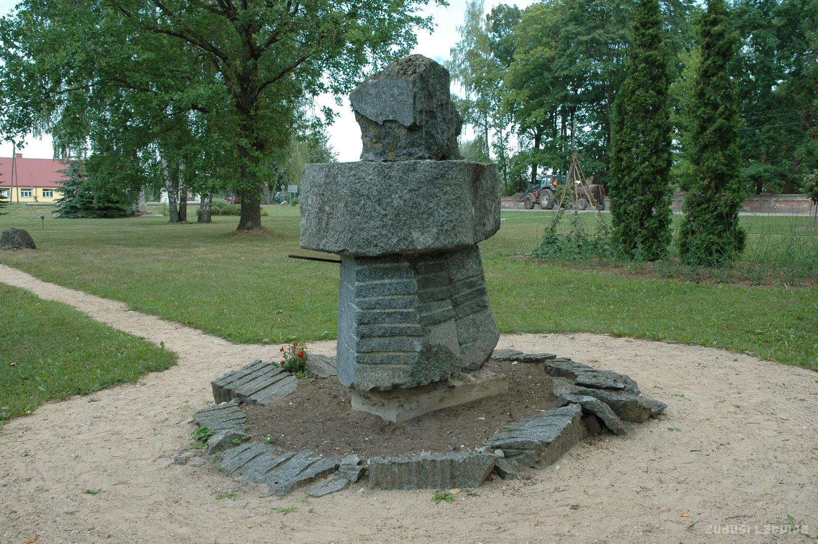 Piemineklis 1944. gada Ziemassvētku kaujās kritušajiem 19. divīzijas cīnītājiem 1990. gadā vandāliski saspridzināts, 1991. gadā uzstādīts jauns piemineklis, saglabājot vecā atliekas, Tēln. I. Dobičins, arhitekts R. Dobičina
