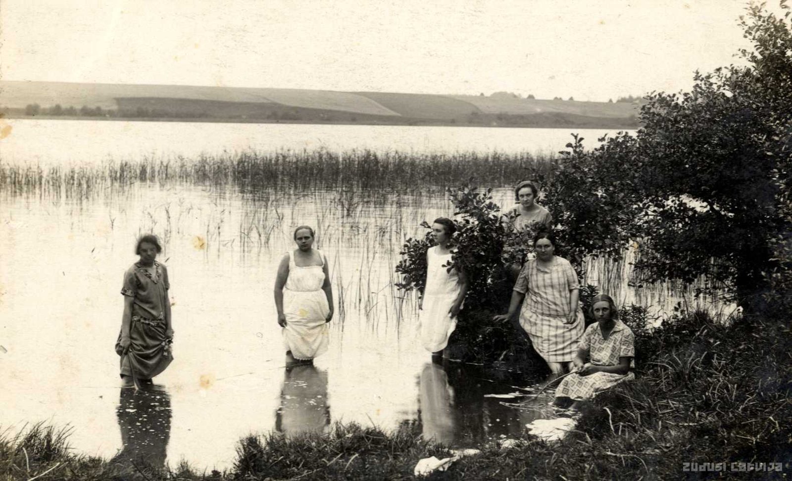 Limbažu pilsētas sievietes Lielezera ūdeņos. Tie Limbažu iedzīvotāji, kuri vēlējās atpūsties ārpus pilsētas varēja pabūt Lielezera krastā ierīkotajā pludmalē, peldēties un braukt ar laivām. Savukārt, ziemā, kad ezeru pārklāja bieza ledus kārta, notika sacensības ar zirgu pajūgiem