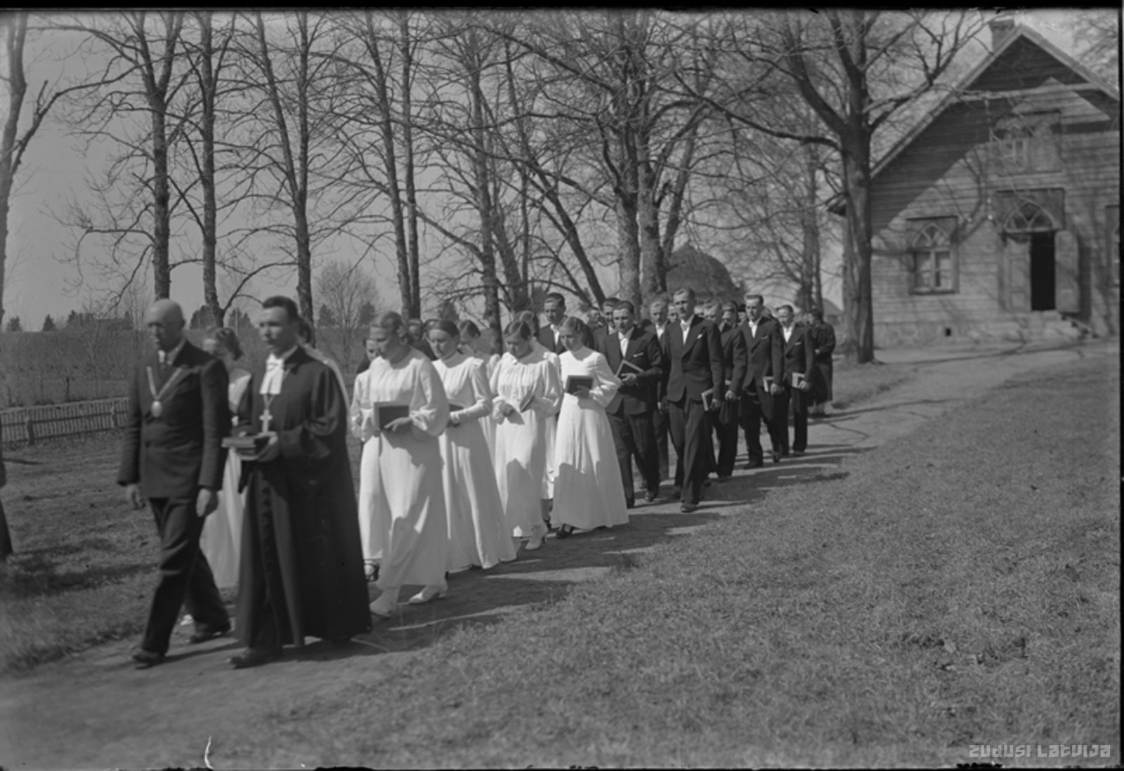 Mācītājs ar iesvētāmiem jauniešiem nāk no draudzes konfirmantu mājas. Koka ēka celta 1901.gadā. Padomju okupācijas laikā tai stipri tika bojāts jumts, vēlāk ēkai uzlikts šīfera jumts. 2009.gadā veikts zāles remonts, tagad tur ziemā notiek dievkalpojumi