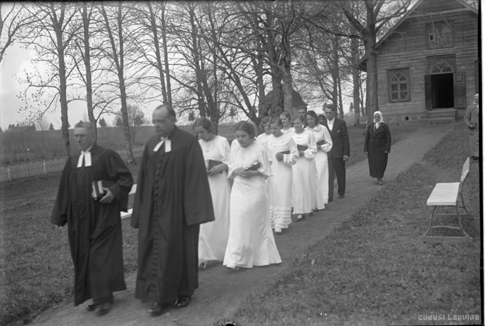 Mācītājs ar iesvētāmiem jauniešiem nāk no draudzes konfirmantu mājas. Koka ēka celta 1901.gadā. Padomju okupācijas laikā tai stipri tika bojāts jumts, vēlāk ēkai uzlikts šīfera jumts. 2009.gadā veikts zāles remonts, tagad tur ziemā notiek dievkalpojumi