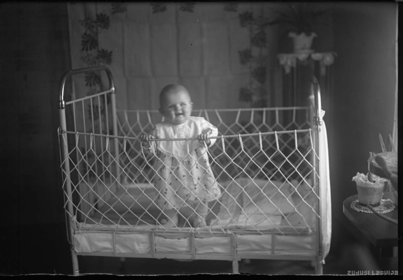 Bērns stāv gultiņā