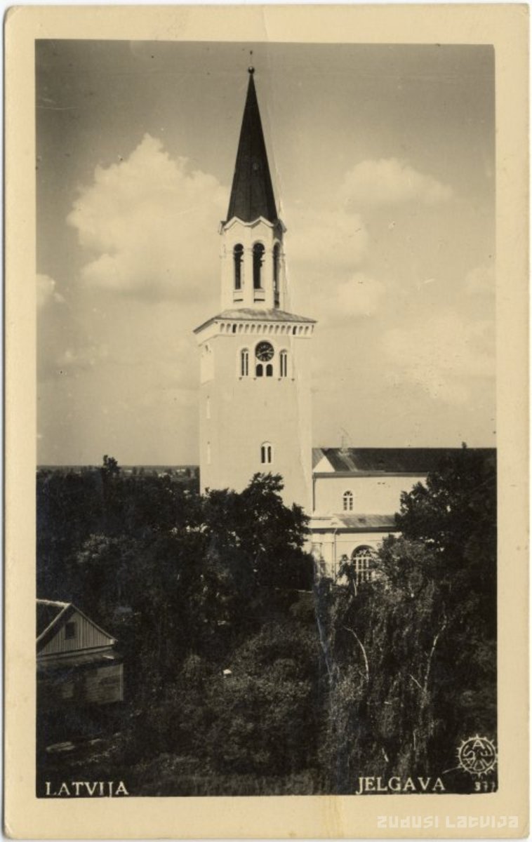 Jelgavas Svētās Trīsvienības luterāņu baznīcu sāka celt 1574.gadā un pabeidza 1625.gadā. Vācu evanģēliski luteriskās Svētās Trīsvienības baznīcas tornis ir celts no 1660. līdz 1688.gadam. Astoņstūraino zvanu torni baznīca ieguva 1862.gadā. Baznīca pati gāja bojā Otrā pasaules kara laikā, līdz mūdienām ir saglabājusies torņa senākā daļa (pārklāta ar piramīdas veida stikla jumtu) un baznīcas vārti