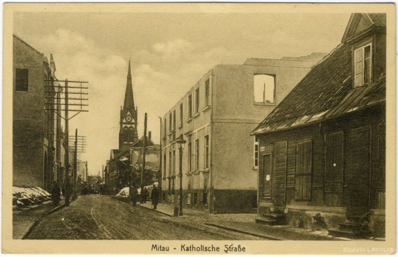 Jelgava. Katoļu iela ar Bezvainīgās Jaunavas Marijas katoļu baznīcu