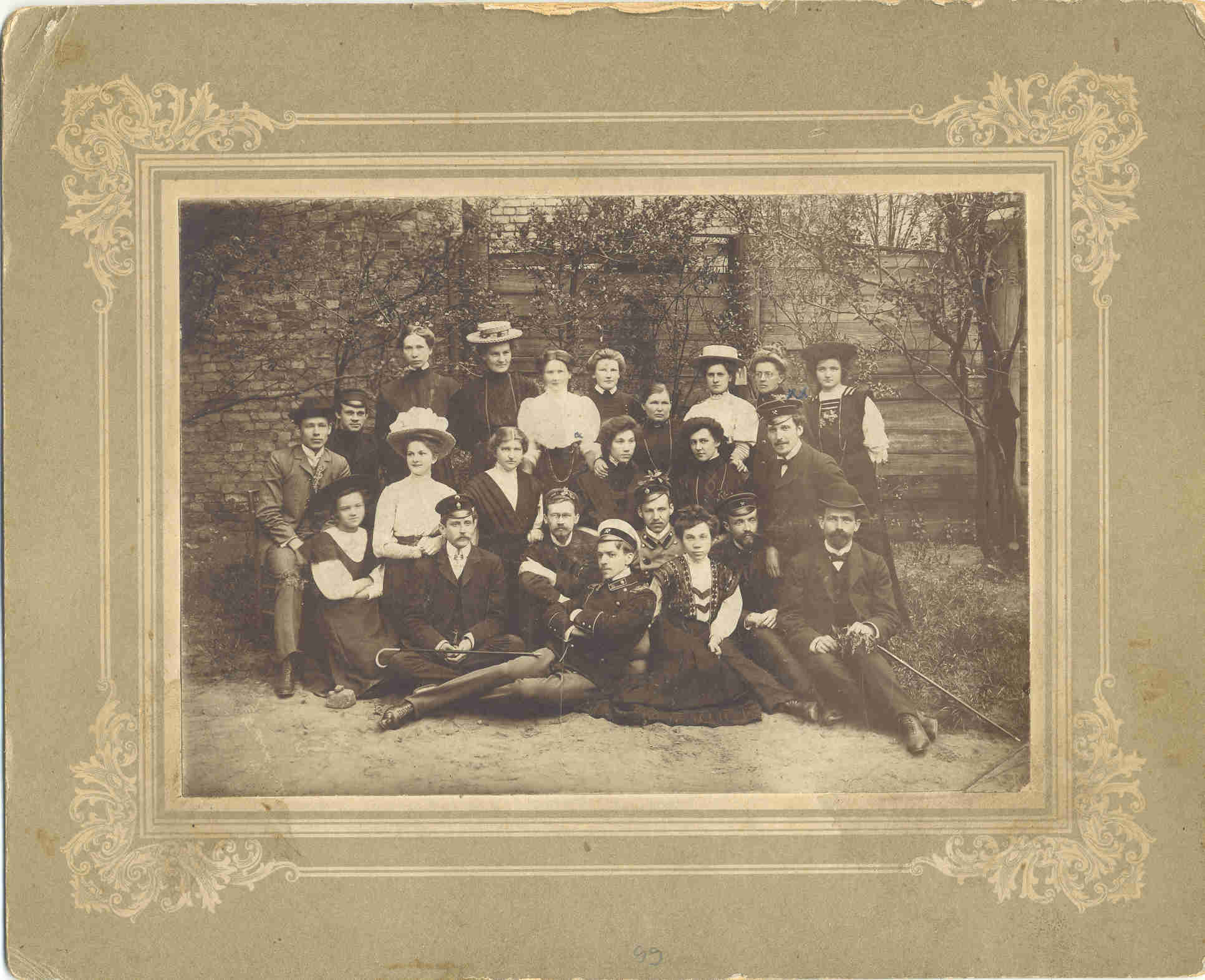 Redzamās personas (saskaņā ar uzrakstu fotogrāfijas o.p.): apakšā Hermanovskis, Zvirbule, Roberts(?) Klaustiņš; 2.r. Grandsberga, Stāmure, A.Reščevska, Zvirbule-Bīlmane, Kalniņa, Kārlis Kažociņš; 3.r. Olga Zālīte, Lote Kalniņa.