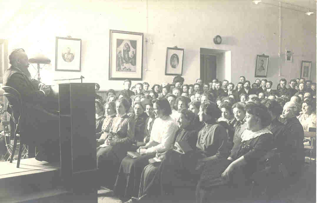 Lapiņš docenta Kisevetera lekcijas klausītāju vidū Maskavas A.L. Šaņavska universitātē 1912.g.