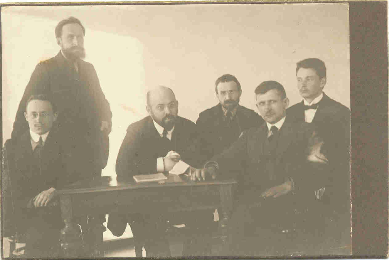 Attēlā redzami Maskavas A.L.Šaņavska universitātes pašvaldību semināra dalībnieki 1913.g. Stāv Teodors Līventāls, pirmais no labās puses P. Lapiņš, ceturtais-privātdocents Zagrackis.
