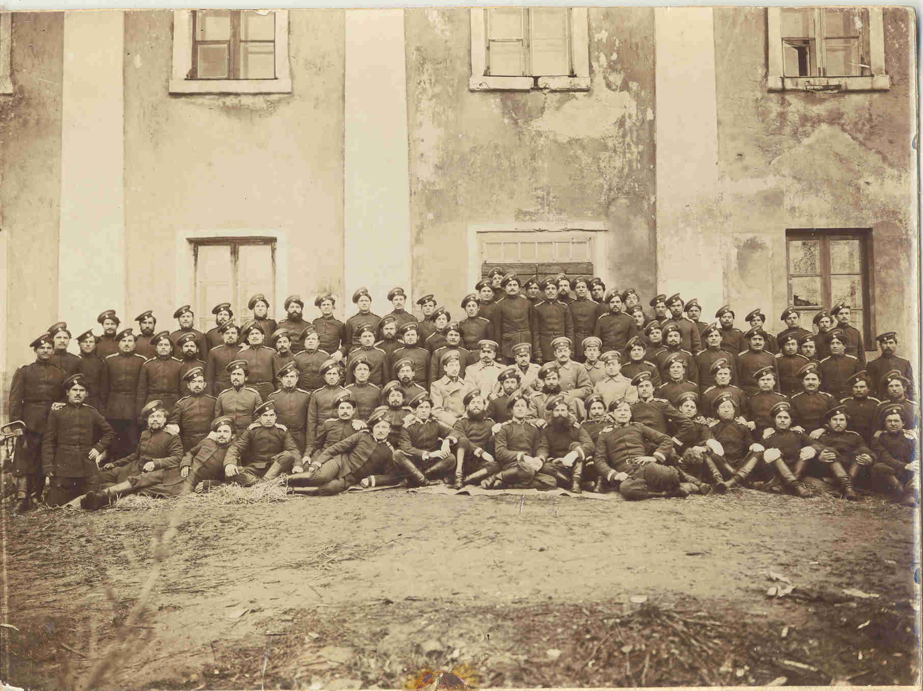 Pirmajā rindā vidū - komandieris Sazonovs un rotemeistars Čerkovs.