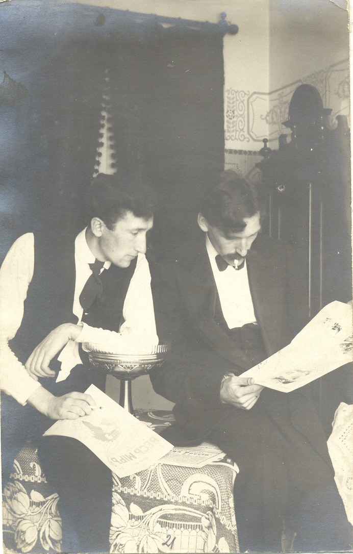 Mūziķi brāļi Kārlis (1886-1920) un Eduards (1891-?) Kažociņi Rīgas dzīvoklī Avotu ielā.