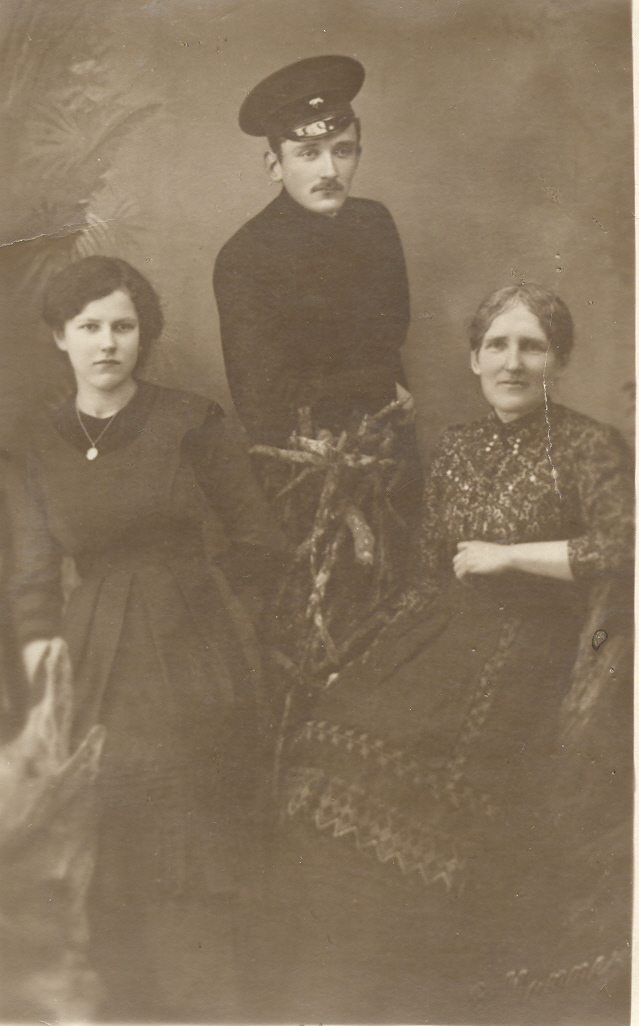 Jānis Kažociņš ar māti un māsīcu.