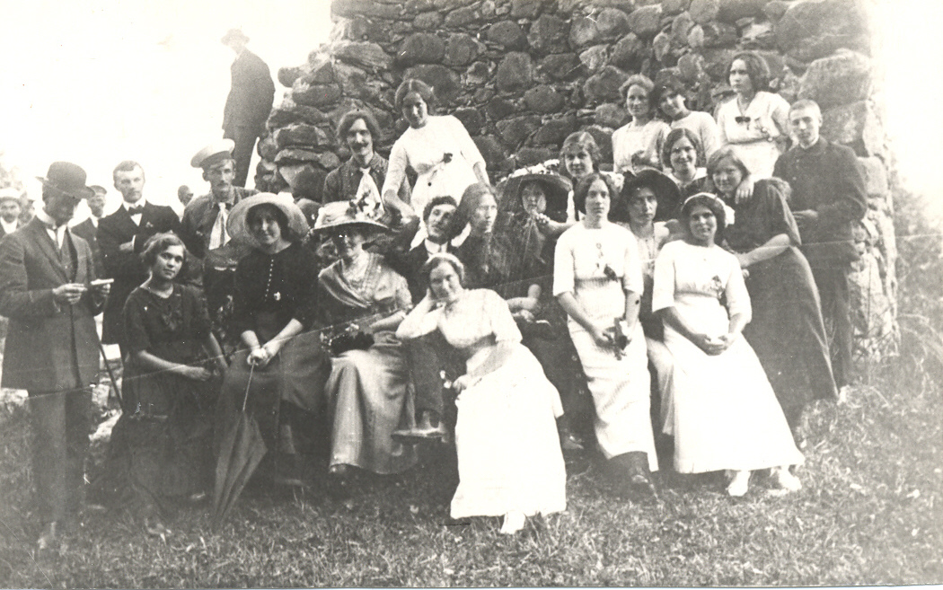 Redzami mūziķi brāļi Eduards, Jānis un Kārlis Kažociņi, Kārļa sieva Emija, viņas māte Grantovska, centrā Milda Lasmane.
