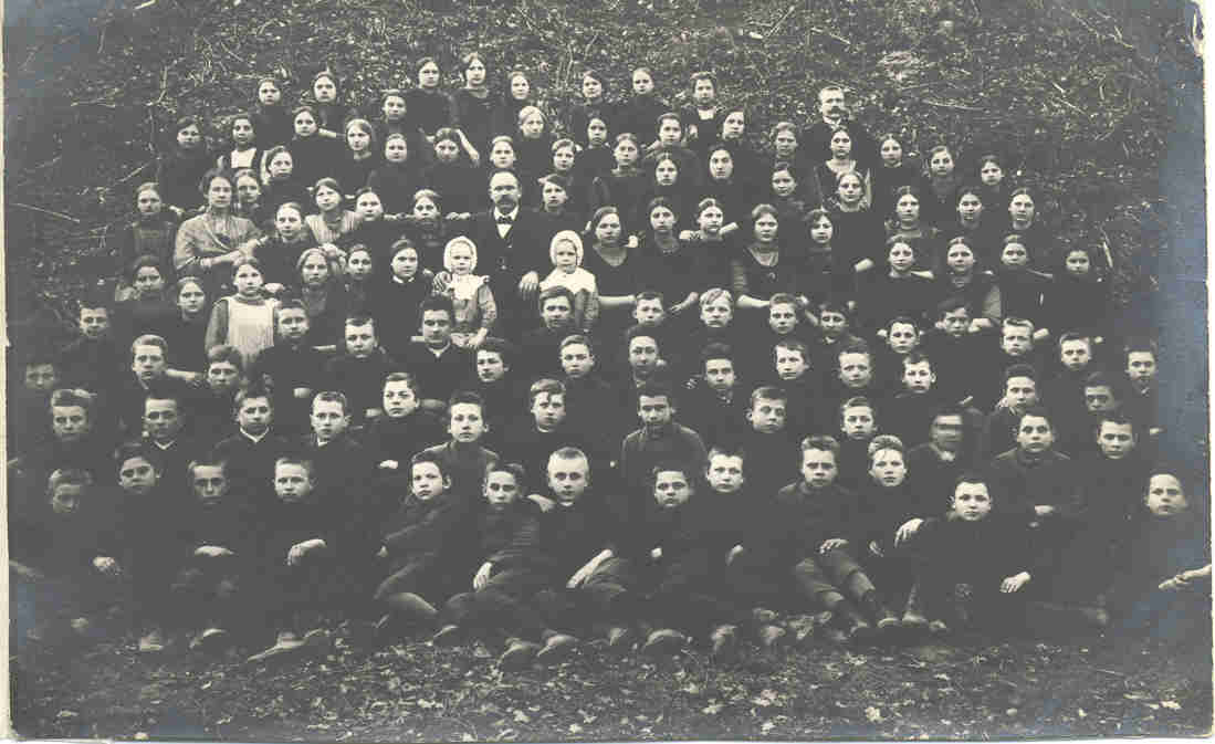 Skolotājs Eduards Auka (1871-1950.gadi), iespējams, Raunas pagastskolas skolēnu vidū, jo šajā skolā viņš strādāja no 1908.gada.
