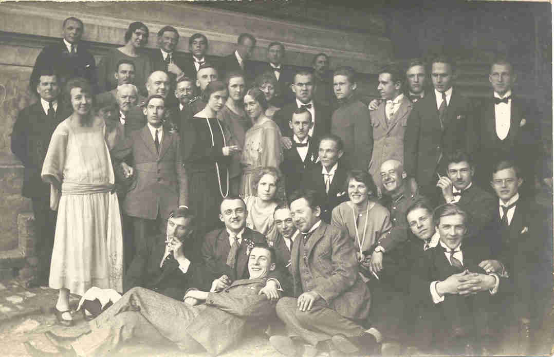 Attēlā redzami, iespējams, pašdarbības teātra dalībnieki.