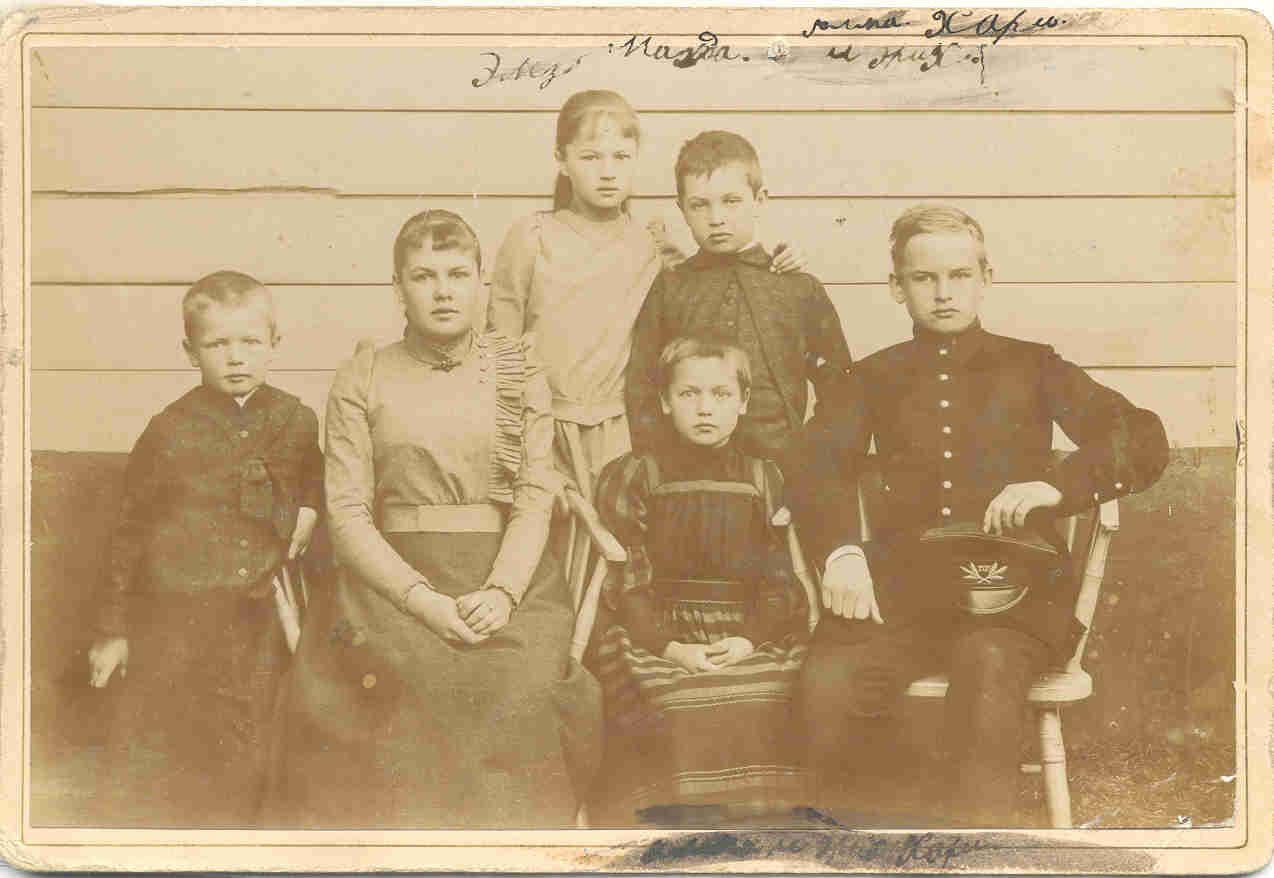 Advokāta Jāņa Einberga (1843-1931) un sabiedriskās darbinieces katrīnas Einbergas (?-1932) bērni Aleksandrs, Elza, Magda, Ēriks, Harijs un Alma.