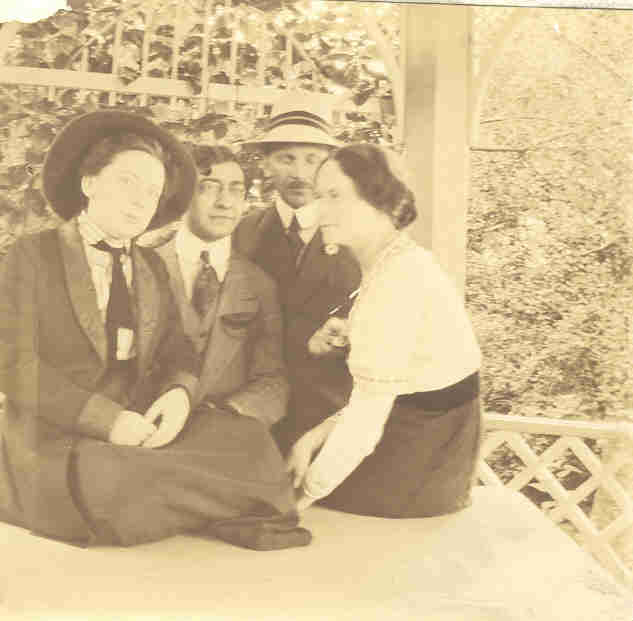 Fotografēts ciemojoties pie Elzas Jendas Raunas mācītājmuižā. Redzami: Zilevica (dz.Mediņa), dziedātājs Pauls Sakss (1878-1966), profesors, pedagogs un vijolnieks Edmondo Lučini (1886-1922) un Katrīna Einberga.