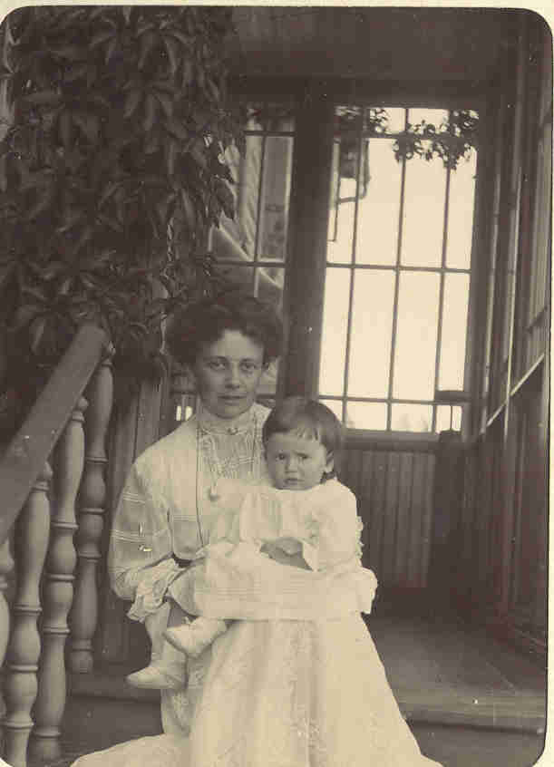 Sieviete ar bērnu uz mājas kāpnēm., Nezināma