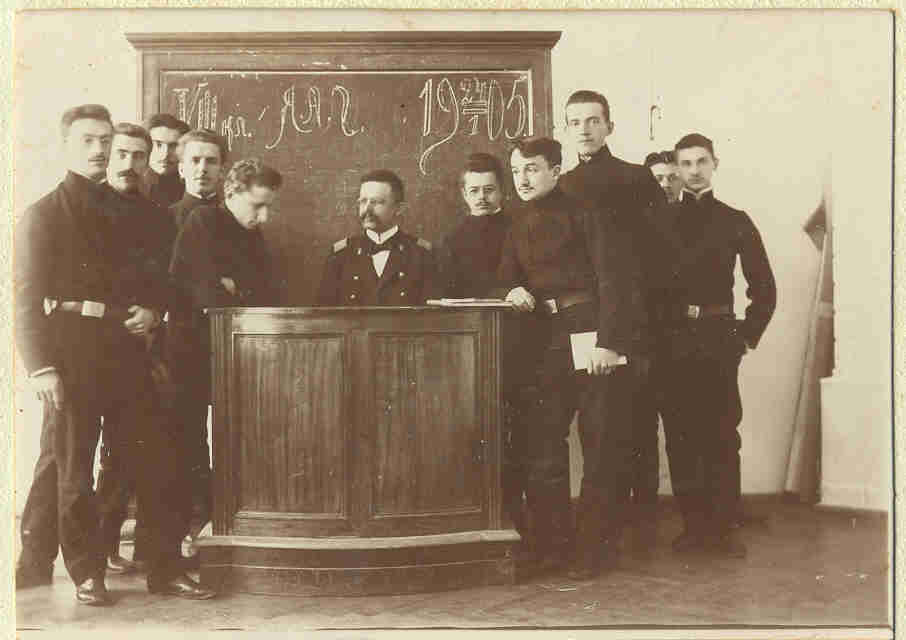 Militāras skolas audzēkņi klasē.