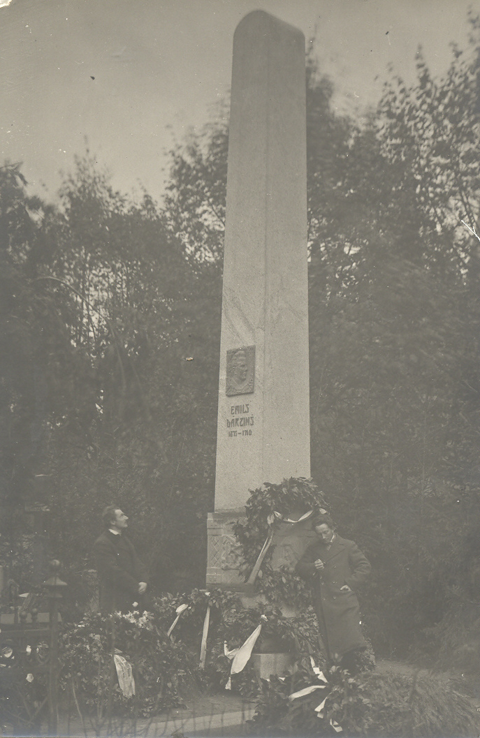 Nezināmi vīrieši pie Emīla Dārziņa kapa pieminekļa., Mūziķis