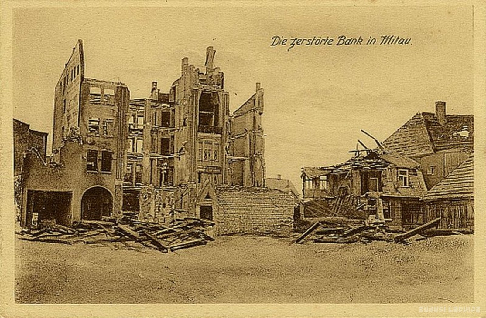 1. pasaules karā sagrautā Jelgavas komercbankas ēka