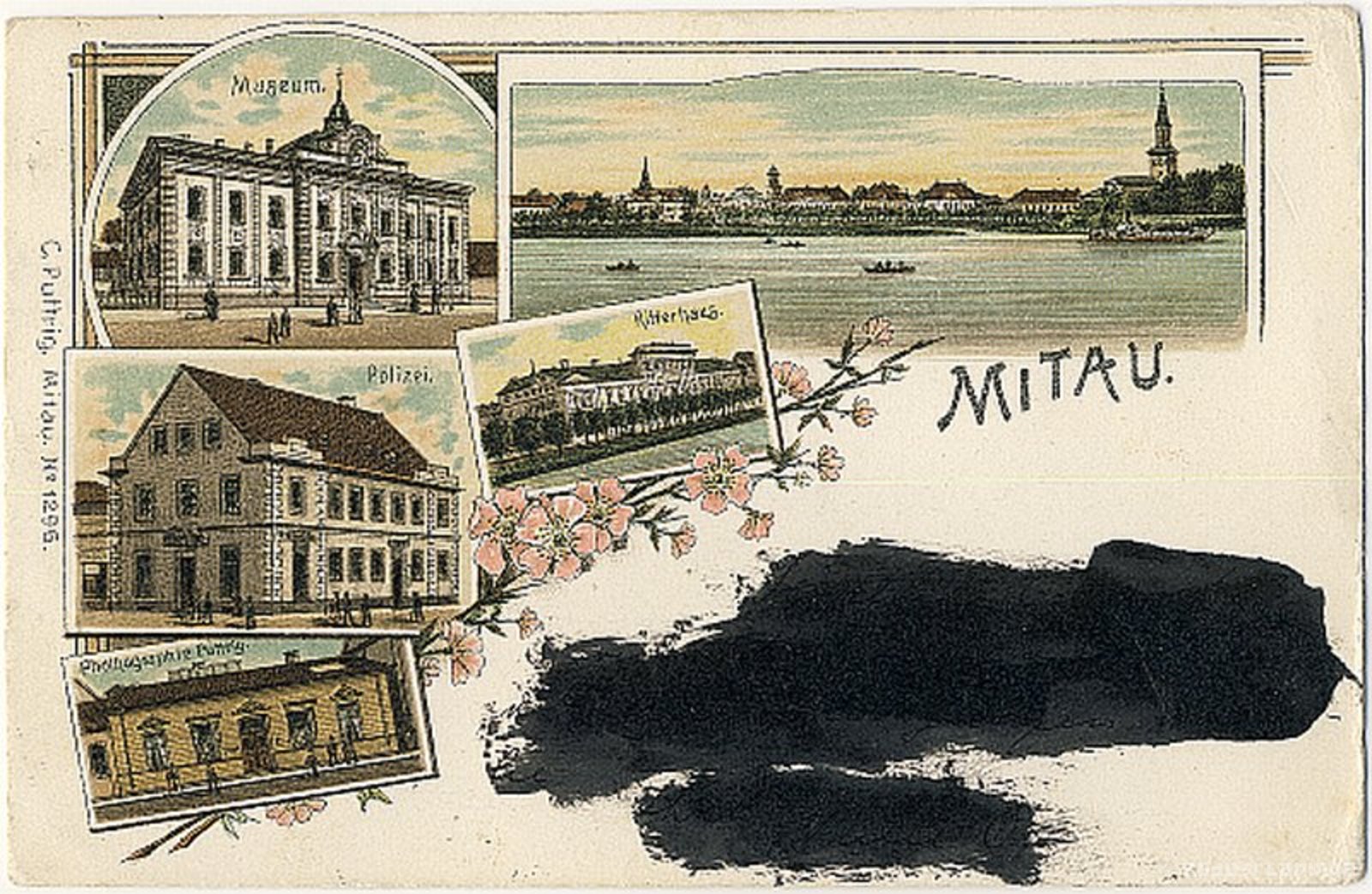 Jelgavas skati ar Jelgavas panorāmu, Kurzemes Provinces muzeju, Kurzemes Bruņniecības namu...