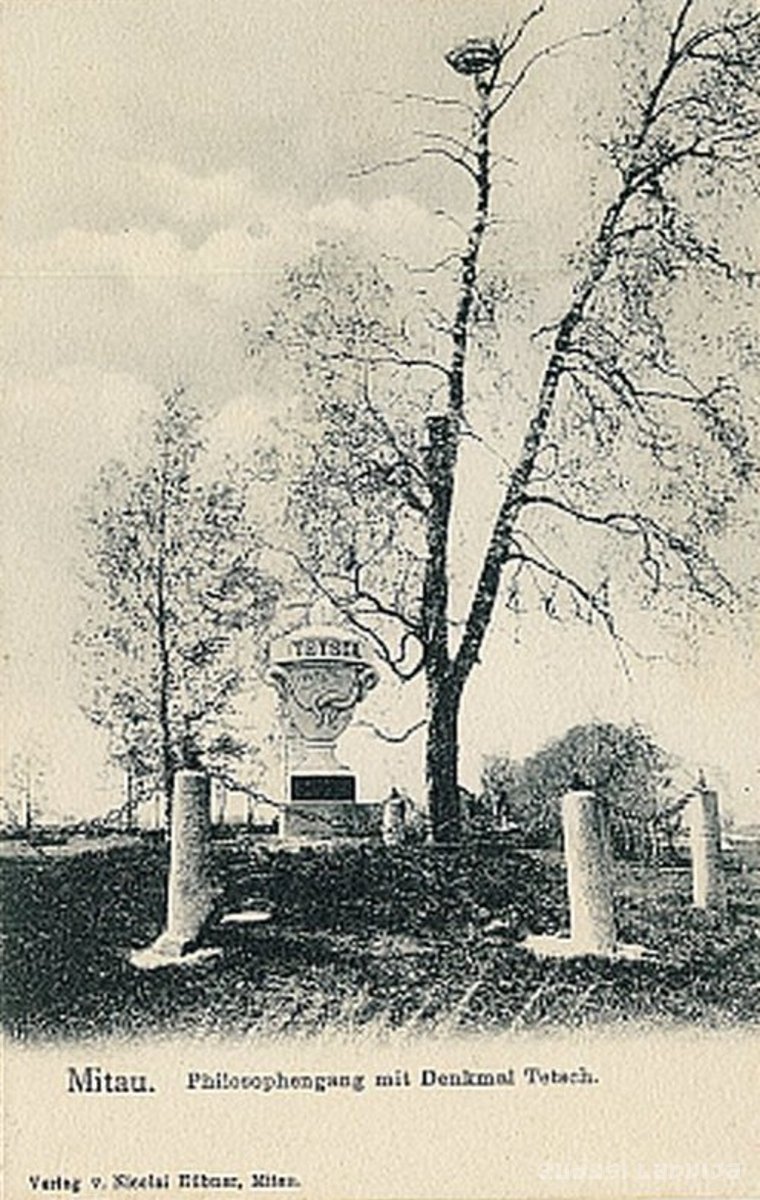 19. gadsimta beigu piemineklis – marmora urna virs Kristofa Teča kapa vietas atrodas aptuveni 1,5 kilometrus no Jelgavas, Dobeles šosejas kreisajā malā, bērzu alejā