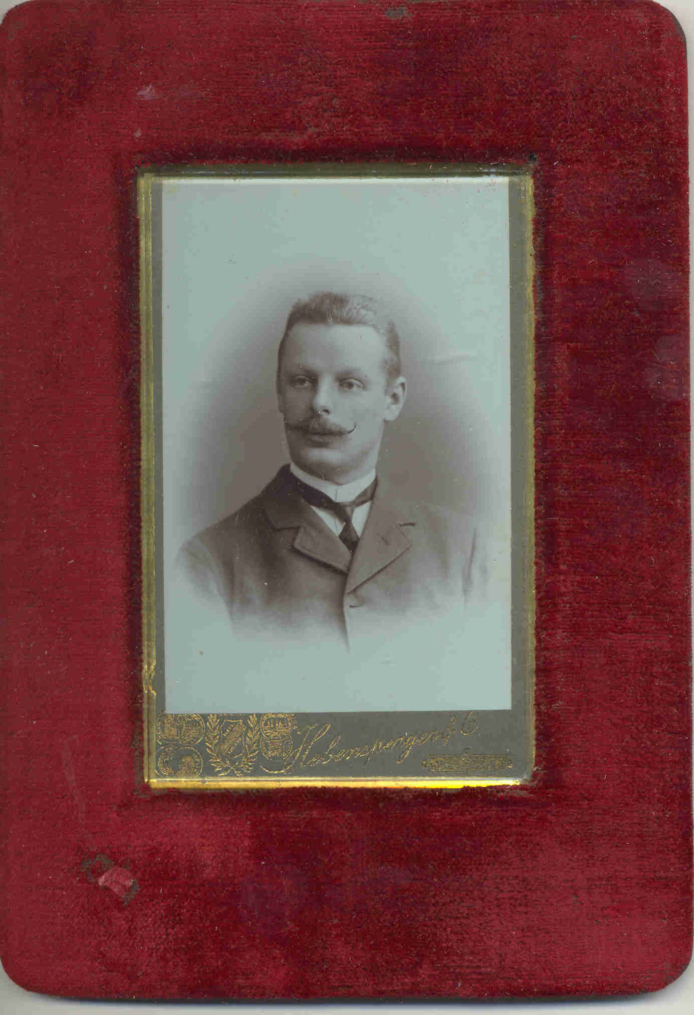 Ierāmēta ar sarkana samta apdari.