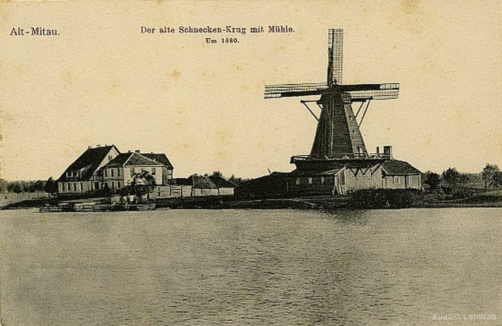 Alt-Mitau. Der alte Schnecken-Krug mit Muhle. Un 1880