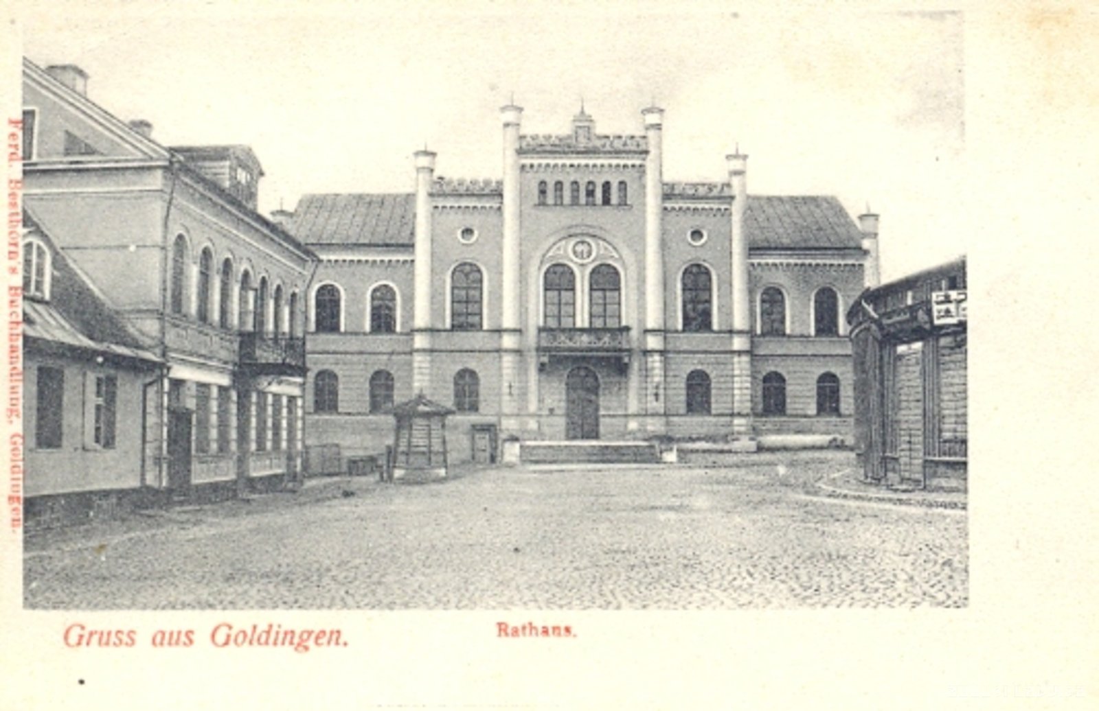 Kuldīga. Tirgus laukums ar rātsnamu priekšplānā