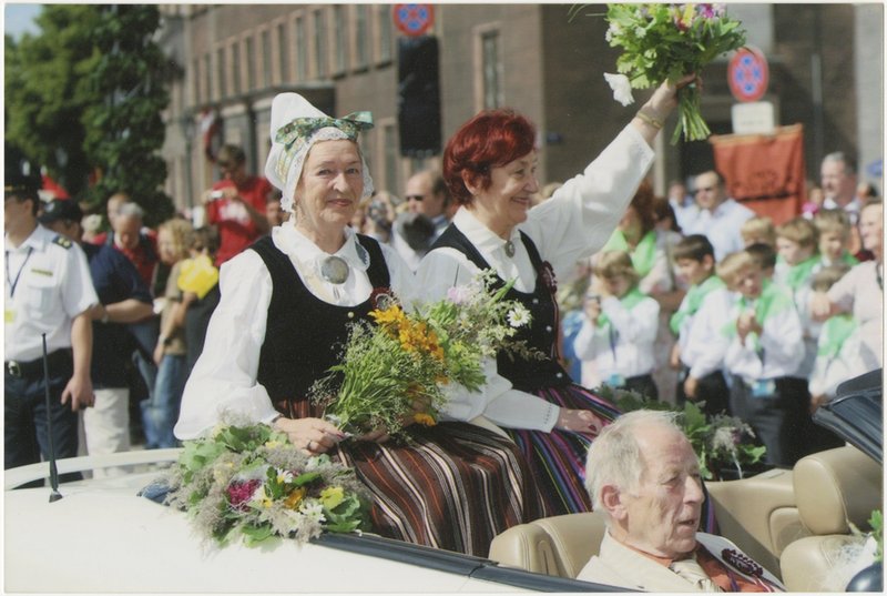 Ingrīda Saulīte un Marga Apsīte dziesmu un deju svētku gājienā