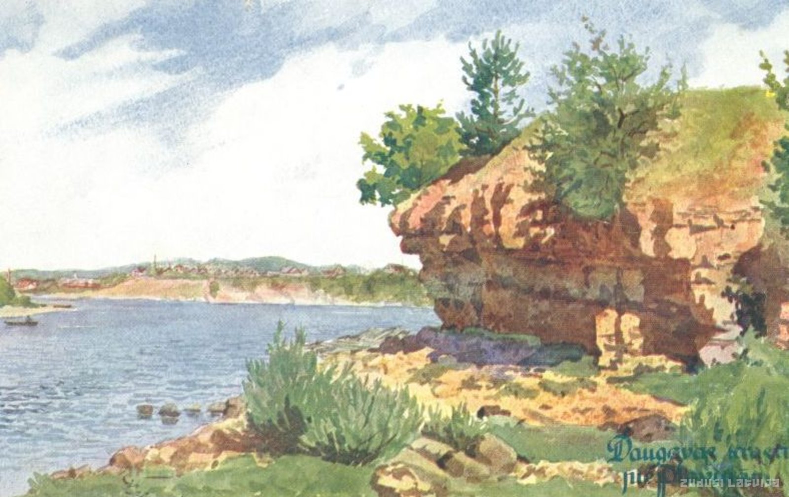 Daugavas labais krasts Pļaviņās starp Skanstupītes grīvu (Valītēm) un Lielo Krasta ielu. Daļēji appludināts 1965.gadā, uzbūvējot Pļaviņu hidroelektrostaciju un ierīkojot ūdenskrātuvi. Šajā Daugavas krasta posmā dolomīta atsegumi vairs nav redzami; izņemot reizes, kad ūdenslīmenis krātuvē ir nosēdināts. Akvareli gleznojis Wohlfeil, Erwin, 1900-1991