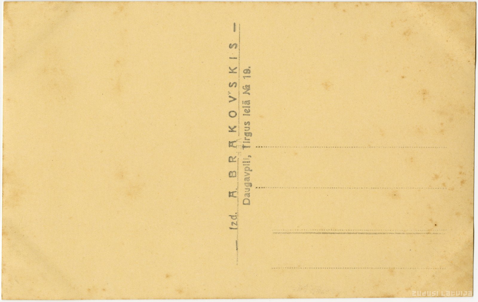 Atklātnes otrajā pusē izdevēja spiedogs: "Izd. A. Brakovskis"