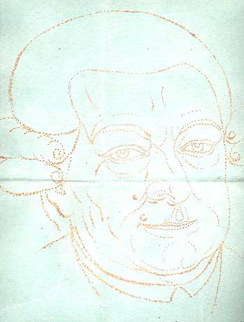 Kopija izgatavota, zīmējuma kontūras caurdurot ar adatu un punktus savienojot ar zīmuli